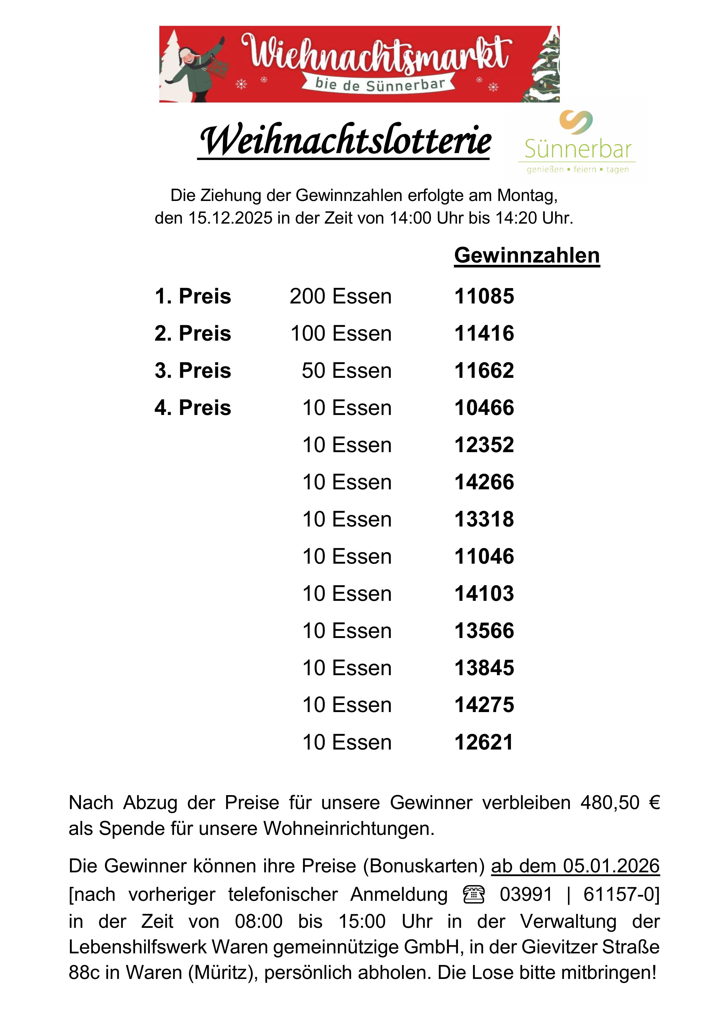 Die "Sünnerbar" öffnet wieder für Sie ab dem 05.01.2026.